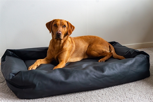 Lounge-seng fra Active Canis med syntetisk bomuldsfyld. Designet til at give hunden god komfort og holde sig frisk takket være sit læderimitationsmateriale.