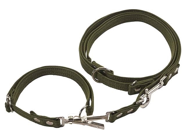 Jagtlinen består af en dressurline på 220cm/20mm, og linen er med integreret justerbart halsbånd (35-60cm/20mm).